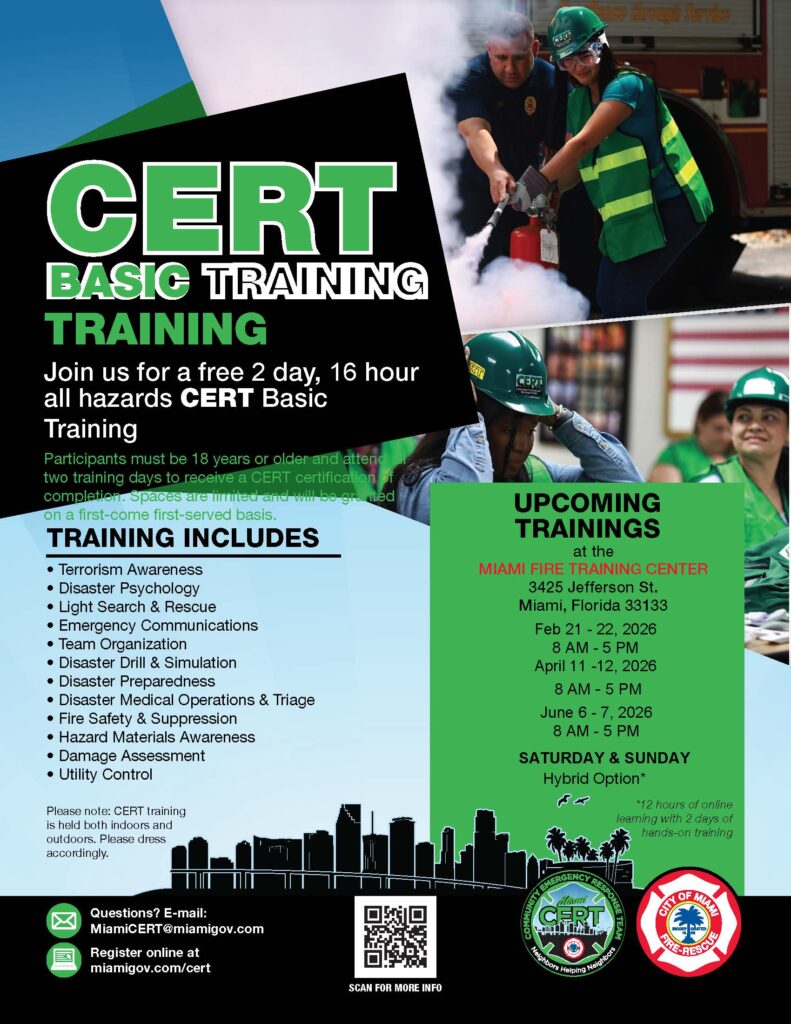 The class fills up quickly, so get details and register today to be the hero your community needs.? Email Miami CERT or visit the City of Miami CERT webpage.